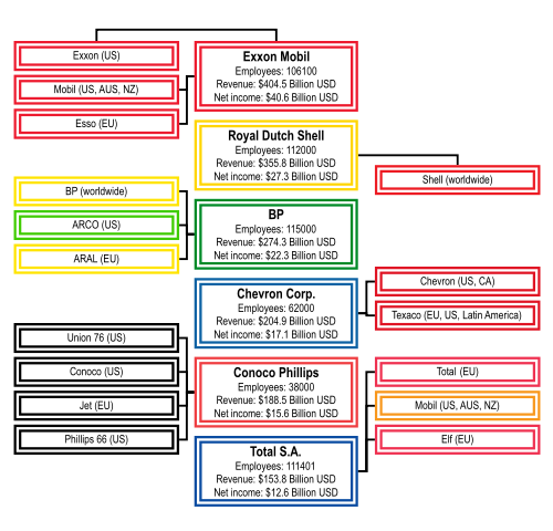 旧「7 sisters」 と6 supermajor はかなり入組んでおり、大半に Standard Oil が関連している。