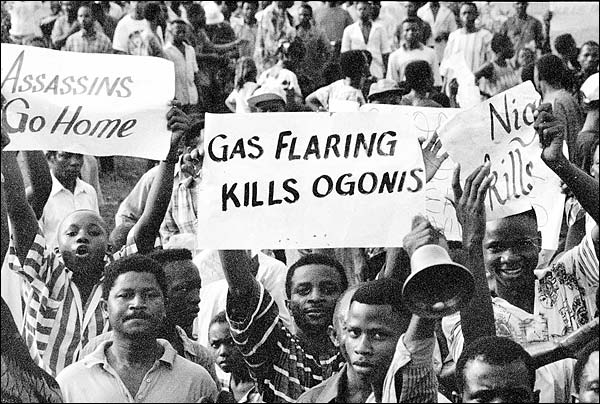 ロイヤルダッチ訴訟では、これもまた軍事政権との結びつきで、パイプライン建設に反対していたケン・サローウィア氏ら数人の処刑、抗議運動に参加していた女性の射殺等に関与していたとしてダッチシェルが訴えられている。地元オゴニ民族弾圧問題への関与。(※Wiwa v. Royal Dutch Petroleum 事件)