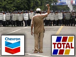 米ユノカル、上記のTotal SA(仏)等もミャンマー軍事政権とのジョイント・ベンチャー、(ヤダナ天然ガス田)パイプライン建設事業で訴訟を起こされている。これが結構物凄い内容で、パイプライン建設に伴い軍政府との契約関連で各所にミャンマー軍が配置される事となり、結果住民は兵士によって建設や運搬などの強制労働や物資提供を命じられる(略奪じゃないか)などの被害を被っているという。その他、補償無しの移住強制やレイプ、拷問、殺人等も起こっているといい、米国でそのユノカル(やトータルもか?)は損害賠償訴訟を起こされている。無茶苦茶じゃないか。