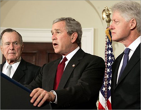しかし、これも案外しんどいのだが、まあそれはよりイメージに適うものを探そうとするからだろうが、しかし写真、映像というのを眺めて観るのも面白い。記者やカメラマンにしてもアーティストでも、よくぞまあこんな瞬間を切り取ったものだと感心する事もしばしば。ここでは政治関連、経済やその辺りが多いのでそういったものになるが、例えばだが中でもブッシュ、あの馬鹿親父の滑稽さをみな(キャメラマンは)狙って撮っているとしか思えない…(苦笑)。