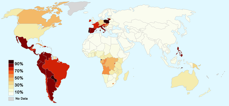 カソリック分布;全世界で信徒数は10億人とも言うそうだ。